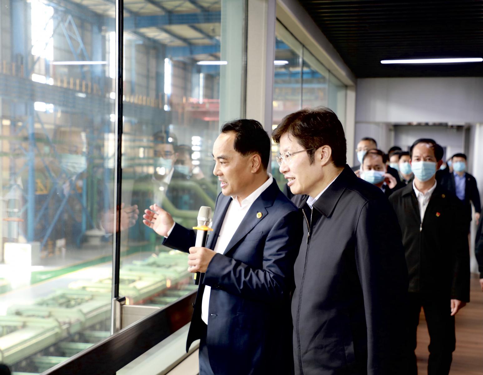 在調(diào)研三寶集團耐腐蝕熱軋卷板廠時,高云龍親切地與員工交流,關(guān)心員工生活狀況、待遇水平。對企業(yè)帶領(lǐng)員工實現(xiàn)共同富裕的做法表示充分贊許!