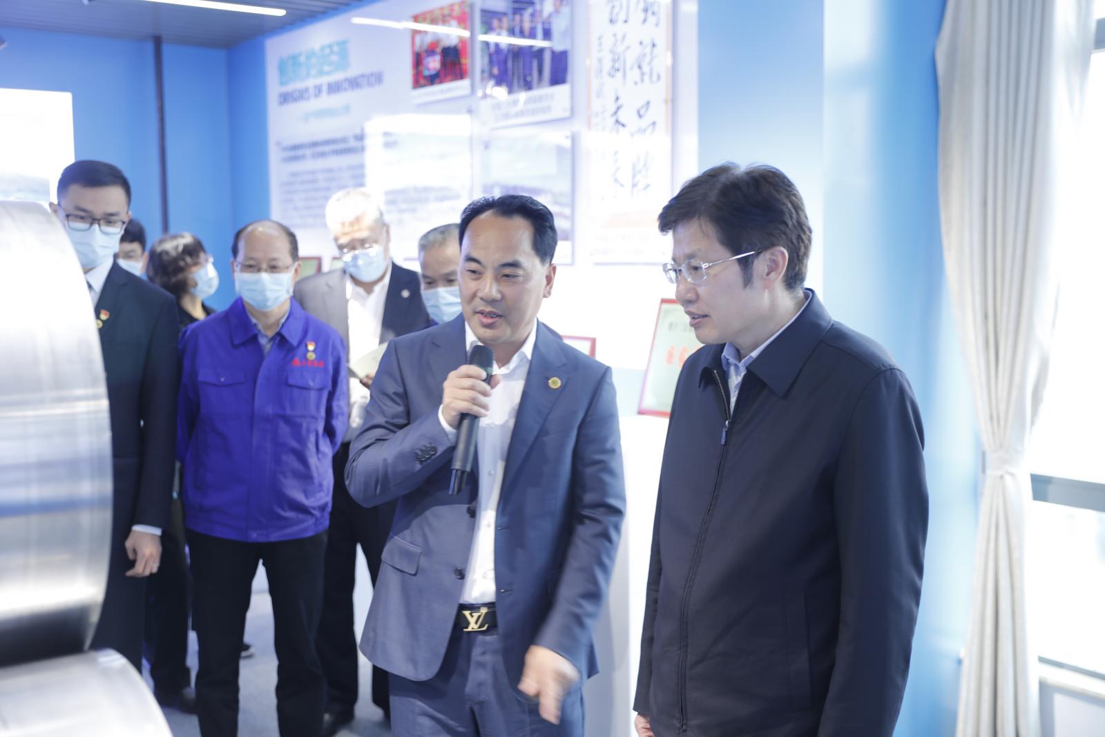 在三寶集團科技樓“創(chuàng)新的力量”展廳,王光文董事長向高云龍主席一行詳細匯報了三寶集團在科技創(chuàng)新的起源、機制探索、研發(fā)成果及品牌價值鏈。