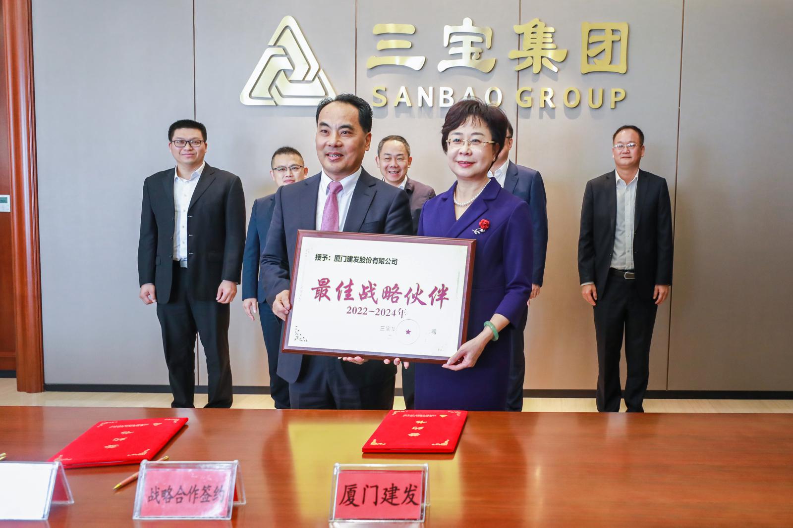 王董事長向廈門建發(fā)股份有限公司授予“最佳戰(zhàn)略伙伴”牌匾。