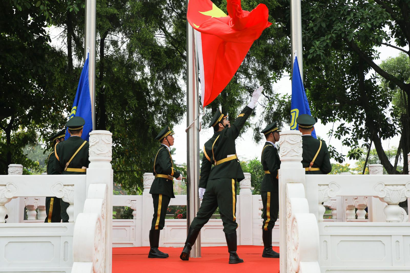 由三寶集團(tuán)職工組建的國(guó)旗護(hù)衛(wèi)隊(duì),邁著鏗鏘有力的步伐,護(hù)送國(guó)旗走向旗臺(tái),在雄壯的國(guó)歌聲中,鮮艷的五星紅旗迎著新一輪朝陽(yáng)冉冉升起,愛(ài)國(guó)之情在所有參加升旗儀式的三寶人心中升騰。