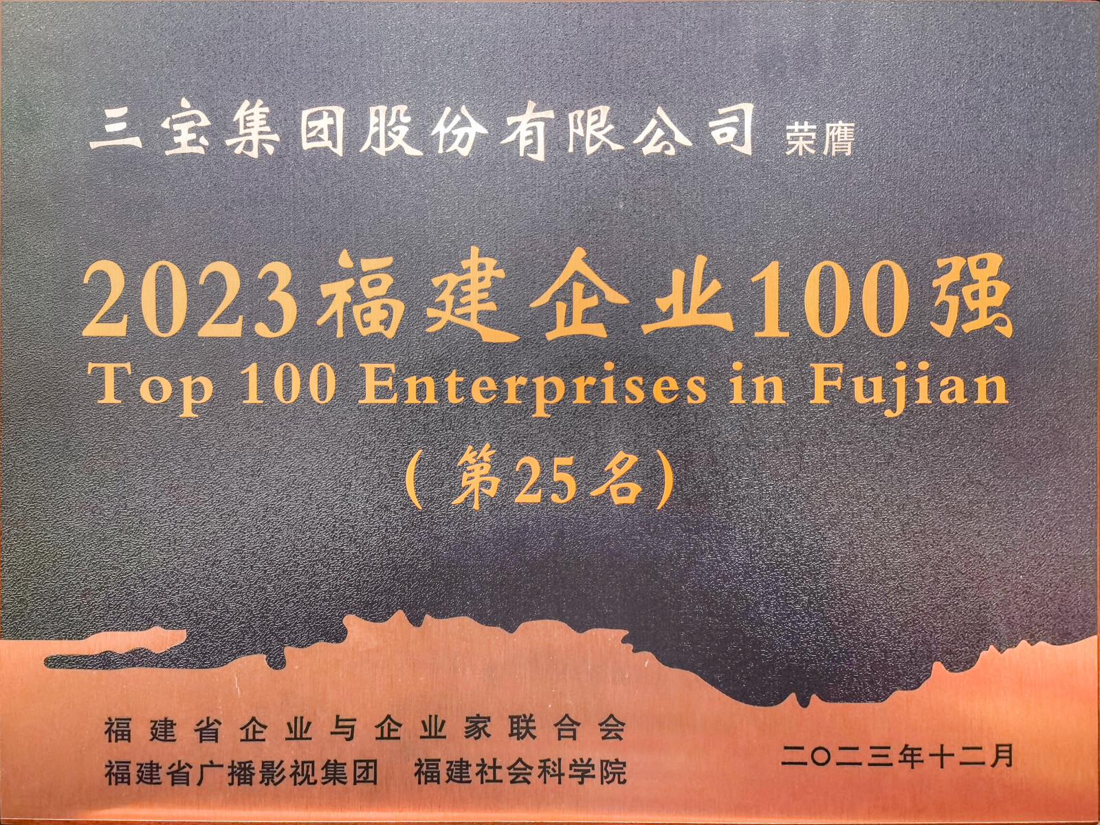 連續(xù)六年登榜福建企業(yè)100強(qiáng),2023年度集團(tuán)排名第25名,位次較去年上升3名