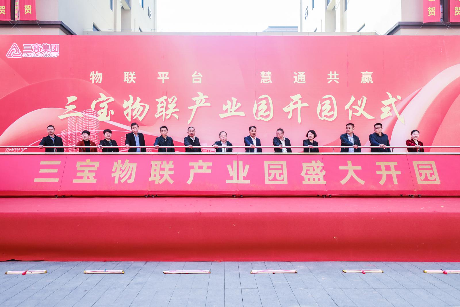 開園儀式上,市區(qū)相關(guān)領(lǐng)導(dǎo)共同推桿啟動(dòng)三寶物聯(lián)產(chǎn)業(yè)園開園。