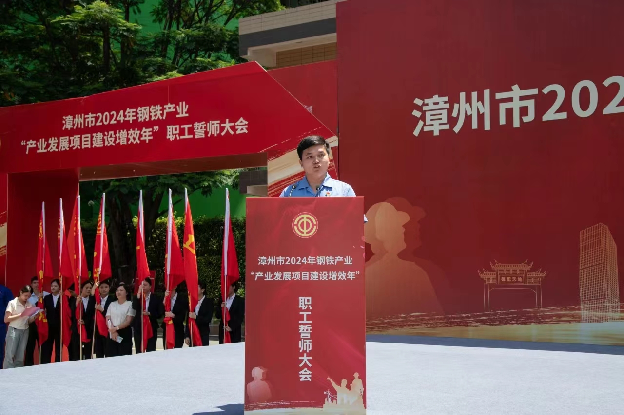 福建龍軸集團(tuán)代表、市勞動(dòng)模范蘇河燦作為職工代表,提出倡議,全市鋼鐵產(chǎn)業(yè)職工要提高政治站位,勇?lián)鷼v史使命,錘煉過(guò)硬本領(lǐng),立足本職崗位,投身鋼鐵產(chǎn)業(yè)發(fā)展。在市委、市政府的堅(jiān)強(qiáng)領(lǐng)導(dǎo)下,用精神凝聚力量,用勞動(dòng)托舉夢(mèng)想,共同為漳州全力打造全省高質(zhì)量發(fā)展新的重要增長(zhǎng)極。