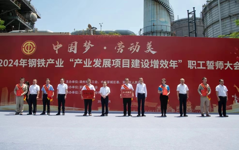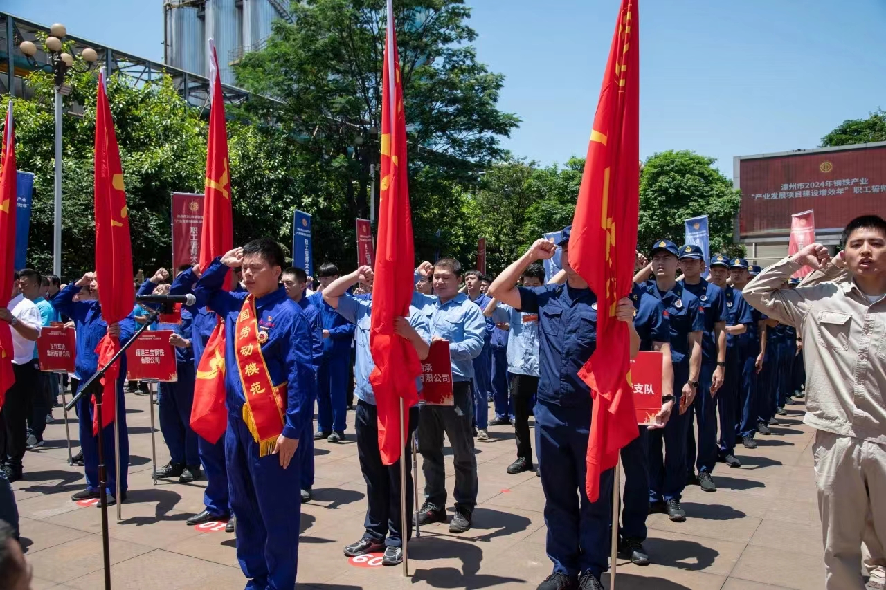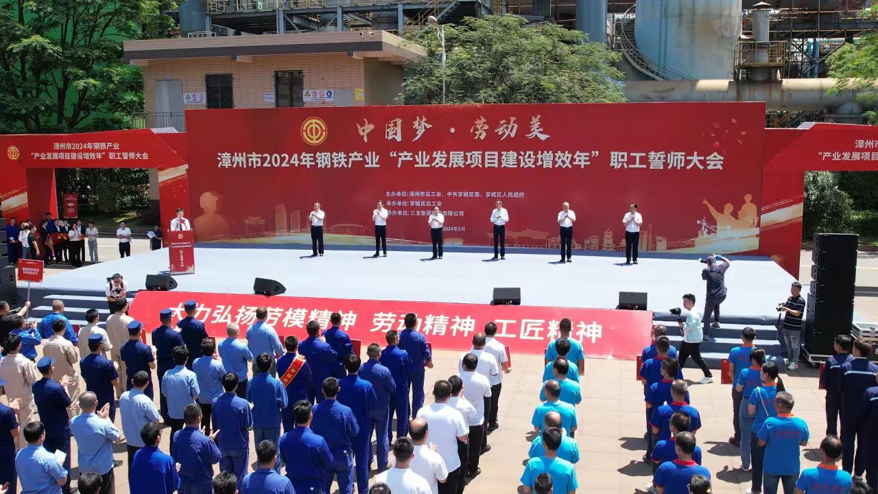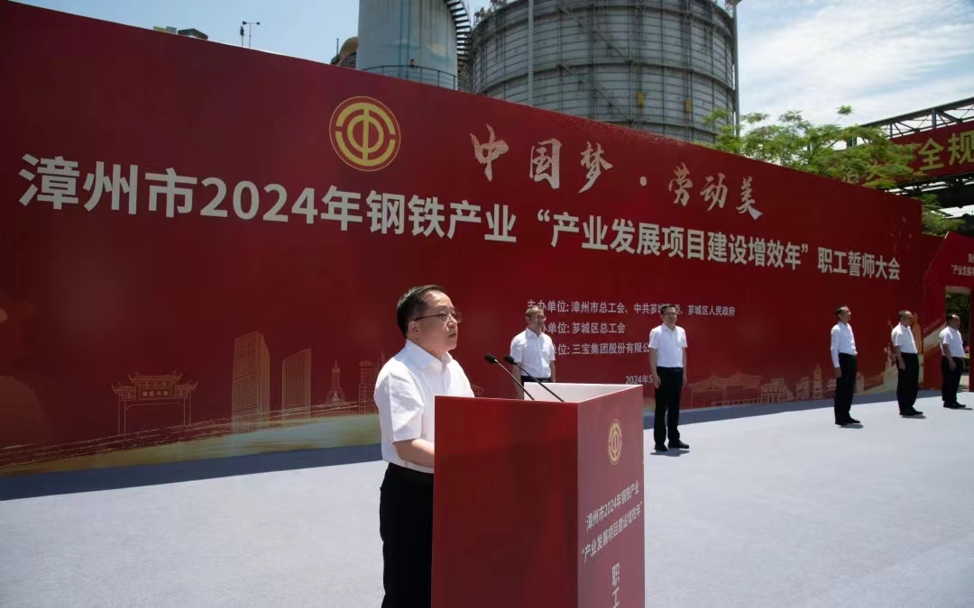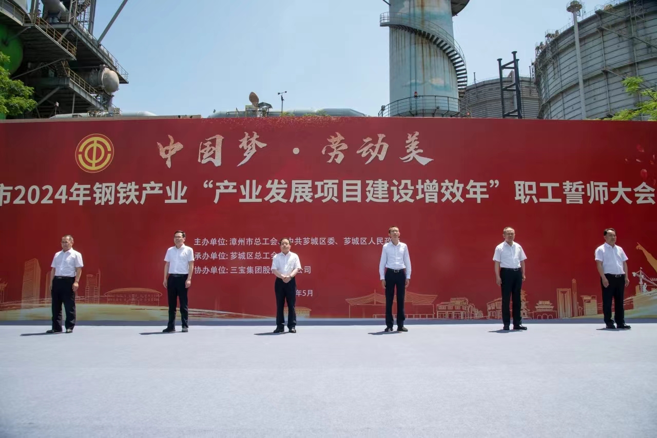 為大力弘揚(yáng)勞模精神、勞動(dòng)精神、工匠精神,展現(xiàn)漳州市鋼鐵產(chǎn)業(yè)職工隊(duì)伍的時(shí)代風(fēng)采和使命擔(dān)當(dāng),扎實(shí)做好“穩(wěn)運(yùn)行、防風(fēng)險(xiǎn)、提質(zhì)量、優(yōu)結(jié)構(gòu)、促轉(zhuǎn)型、增效益”工作,推進(jìn)我市鋼鐵工業(yè)高質(zhì)量發(fā)展,5月29日,由漳州市總工會(huì)、中共薌城區(qū)委、薌城區(qū)人民政府聯(lián)合主辦,薌城區(qū)總工會(huì)承辦,三寶集團(tuán)股份有限公司協(xié)辦的漳州市2024年鋼鐵產(chǎn)業(yè)“產(chǎn)業(yè)發(fā)展項(xiàng)目建設(shè)增效年”職工誓師大會(huì),在薌城區(qū)浦南鎮(zhèn)三寶集團(tuán)股份有限公司廣場(chǎng)舉行。市人大常委會(huì)主任李東河,市委常委、秘書長(zhǎng)、市總工會(huì)主席張鴻,市政府副市長(zhǎng)林少金出席活動(dòng)。
