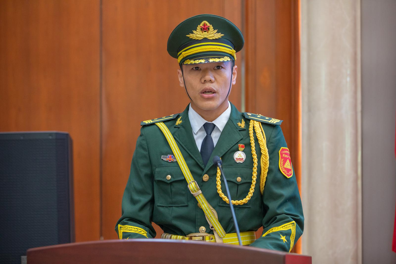 三寶國(guó)旗護(hù)衛(wèi)隊(duì)隊(duì)長(zhǎng)柯維建發(fā)言
