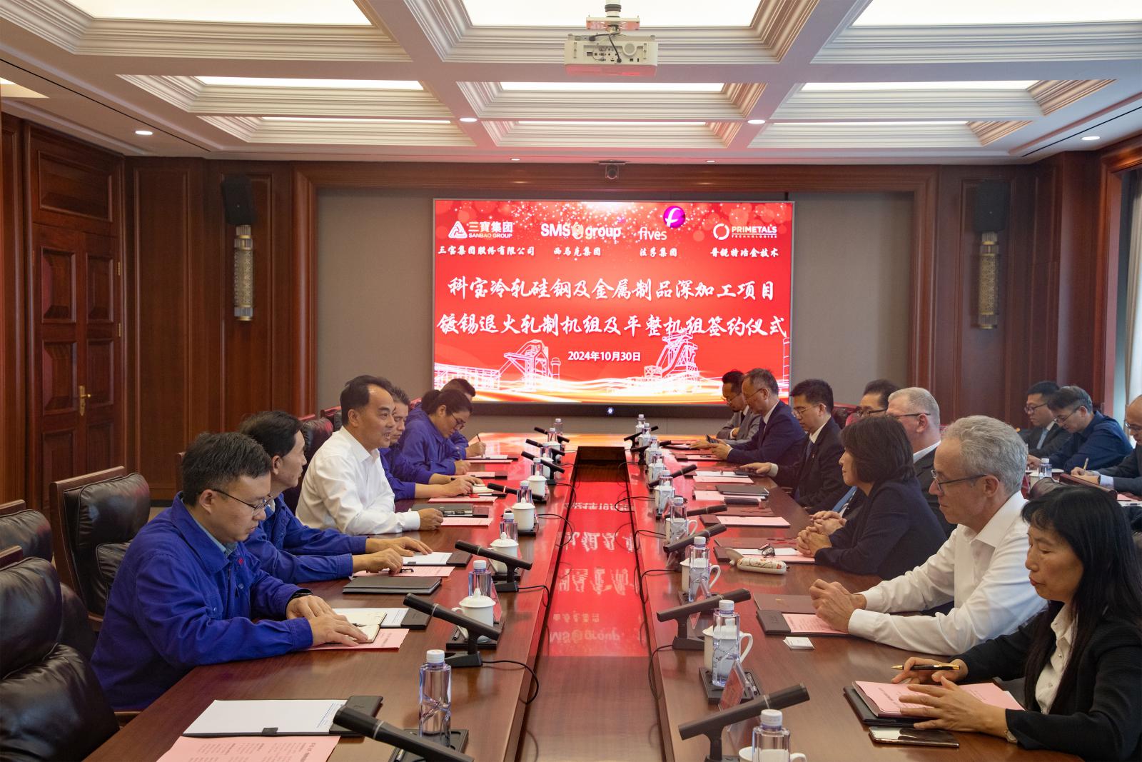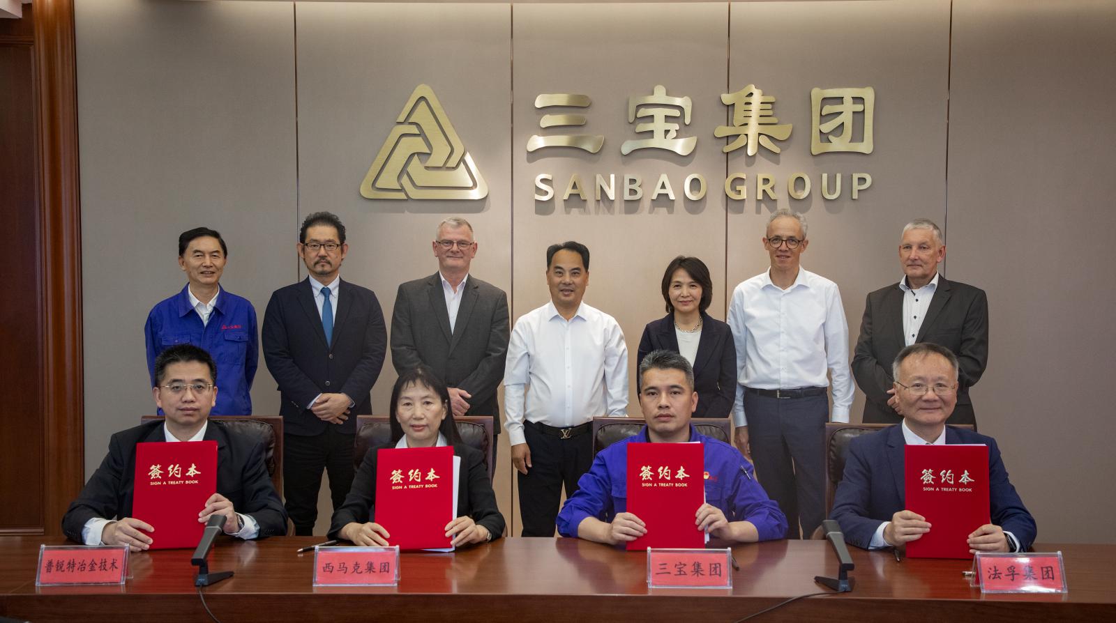 10月30日下午,三寶集團(tuán)與西馬克集團(tuán)、法孚集團(tuán)、普銳特中國(guó)簽訂鍍錫退火軋制機(jī)組及平整機(jī)組合同。