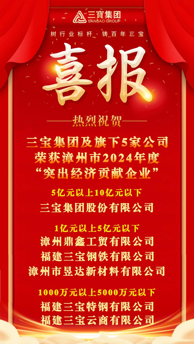 2024年,在市委、市政府的堅(jiān)強(qiáng)領(lǐng)導(dǎo)下,全市上下深入開(kāi)展“產(chǎn)業(yè)發(fā)展項(xiàng)目建設(shè)增效年”活動(dòng)和“三比一看”競(jìng)賽取得豐碩成果。三寶集團(tuán)及旗下5家公司被漳州市人民政府授予“突出經(jīng)濟(jì)貢獻(xiàn)企業(yè)”榮譽(yù)稱(chēng)號(hào)。
