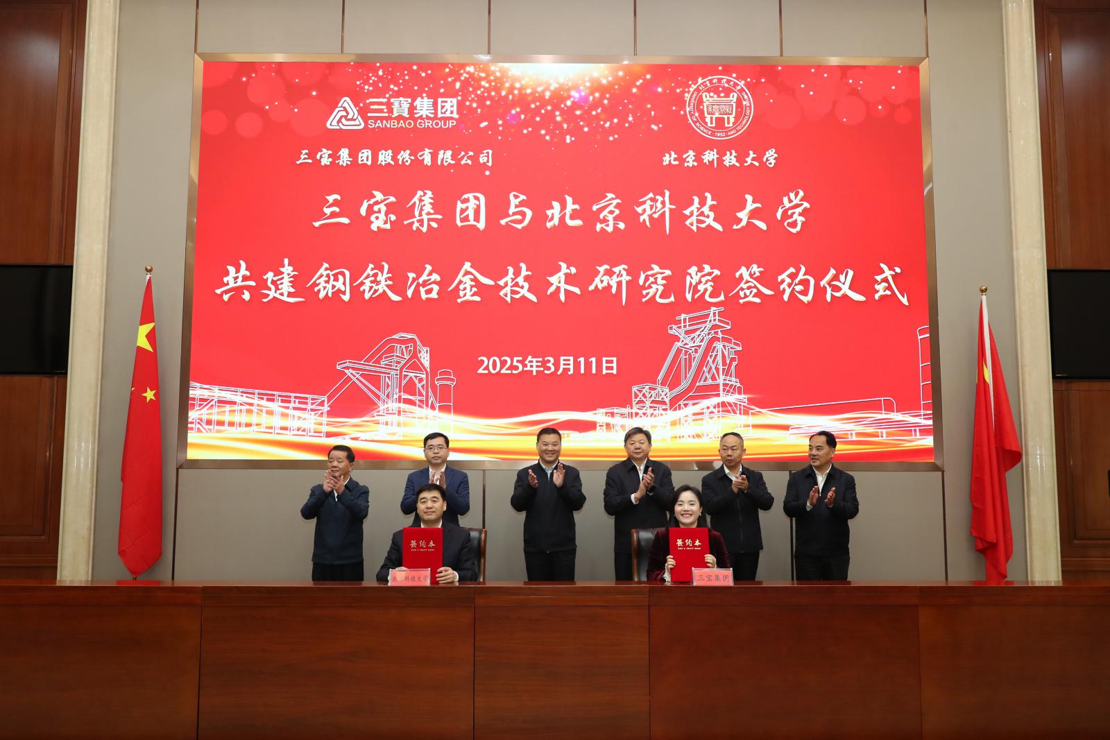 儀式上,北京科技大學(xué)校長楊仁樹感謝三寶集團(tuán)長期以來的信任與支持,對三寶集團(tuán)堅持人才布局、積極促進(jìn)綠色低碳發(fā)展轉(zhuǎn)型升級的戰(zhàn)略規(guī)劃給予了高度評價。他表示,北科大與三寶集團(tuán)改革同向,發(fā)展同行,雙方在過去的合作中建立了牢固的友誼,并在科研和人才培養(yǎng)等方面展開了緊密的合作。此次共建鋼鐵研究院是對產(chǎn)學(xué)研融合的深入探索,是踐行習(xí)總書記重要囑托、推動科技創(chuàng)新和產(chǎn)業(yè)創(chuàng)新深度融合的生動實踐。希望雙方能依托鋼鐵研究院,聯(lián)合攻克鋼鐵行業(yè)核心關(guān)鍵技術(shù),優(yōu)化人才培養(yǎng)模式,為三寶集團(tuán)鋼鐵產(chǎn)業(yè)可持續(xù)發(fā)展注入強(qiáng)勁動力。