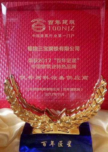 11月29日,在《百年建筑網(wǎng)》舉辦的2017第二屆“百年匠星”中國(guó)建材企業(yè)評(píng)選活動(dòng)中,福建三寶鋼鐵有限公司,不負(fù)眾望當(dāng)選2017“百年匠星”中國(guó)建筑業(yè)特色品牌優(yōu)秀材料設(shè)備供應(yīng)商。